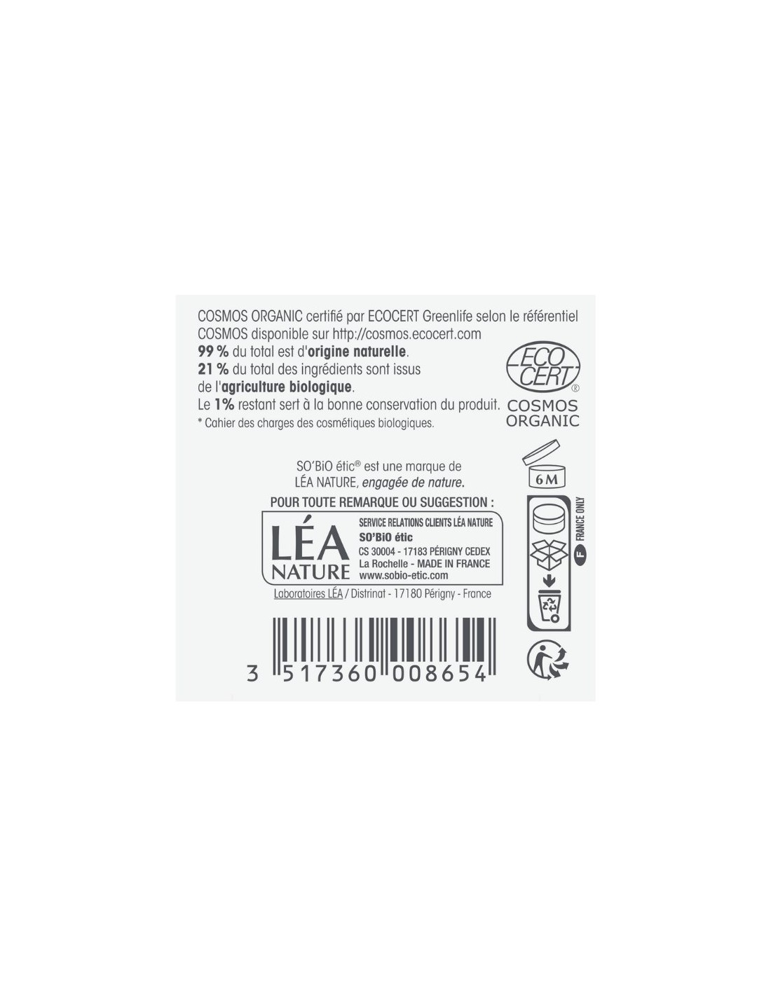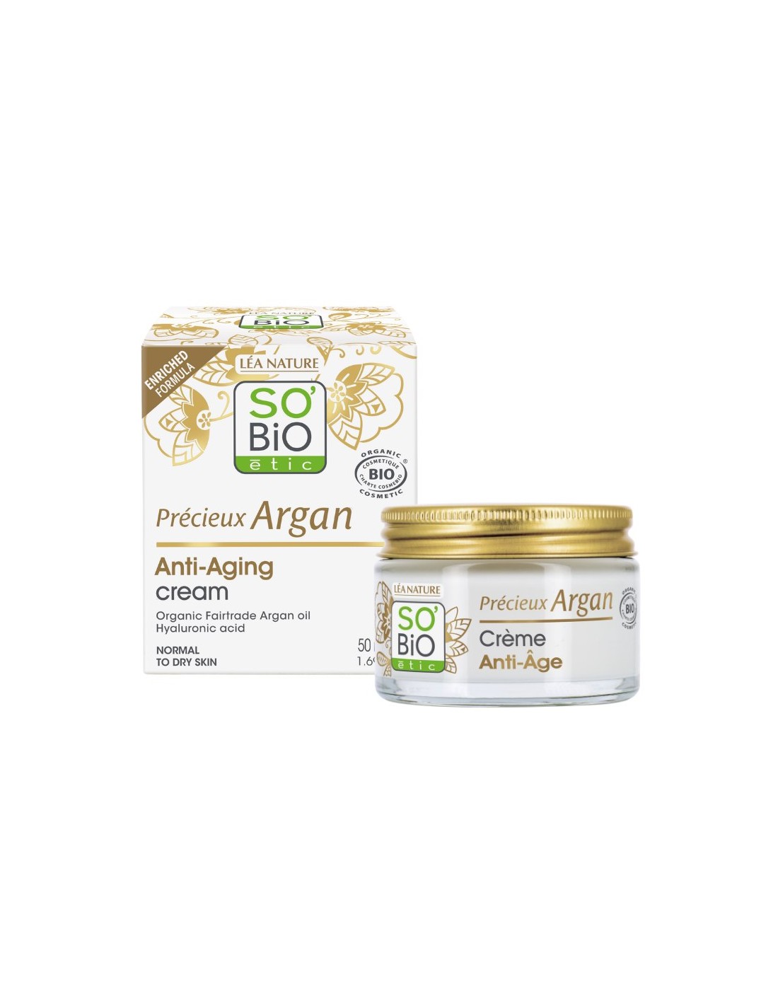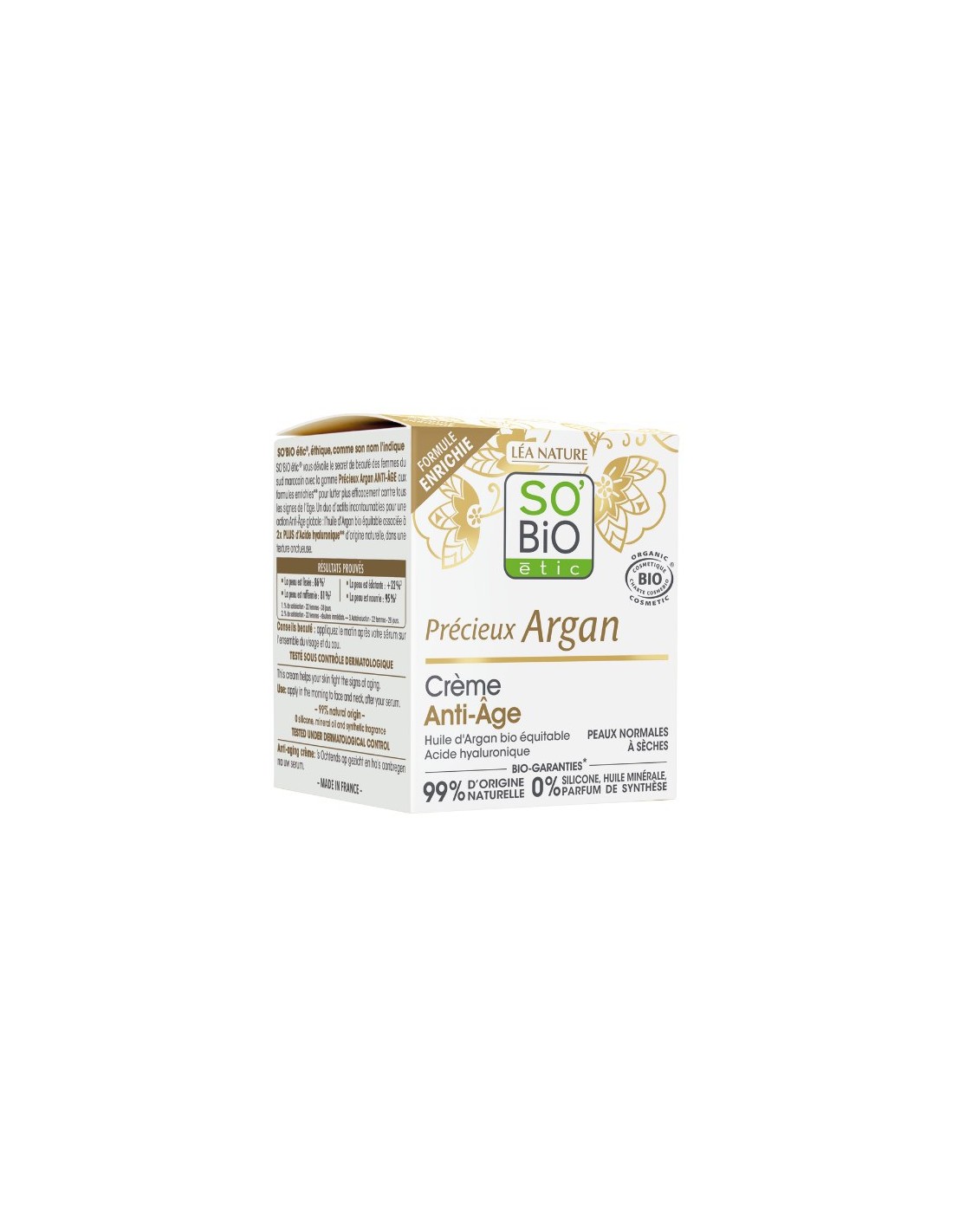 Aplicar la crema por la mañana sobre la piel limpia de rostro y cuello. Se recomienda usar por la noche el gel noche argán de SO'BiO étic.