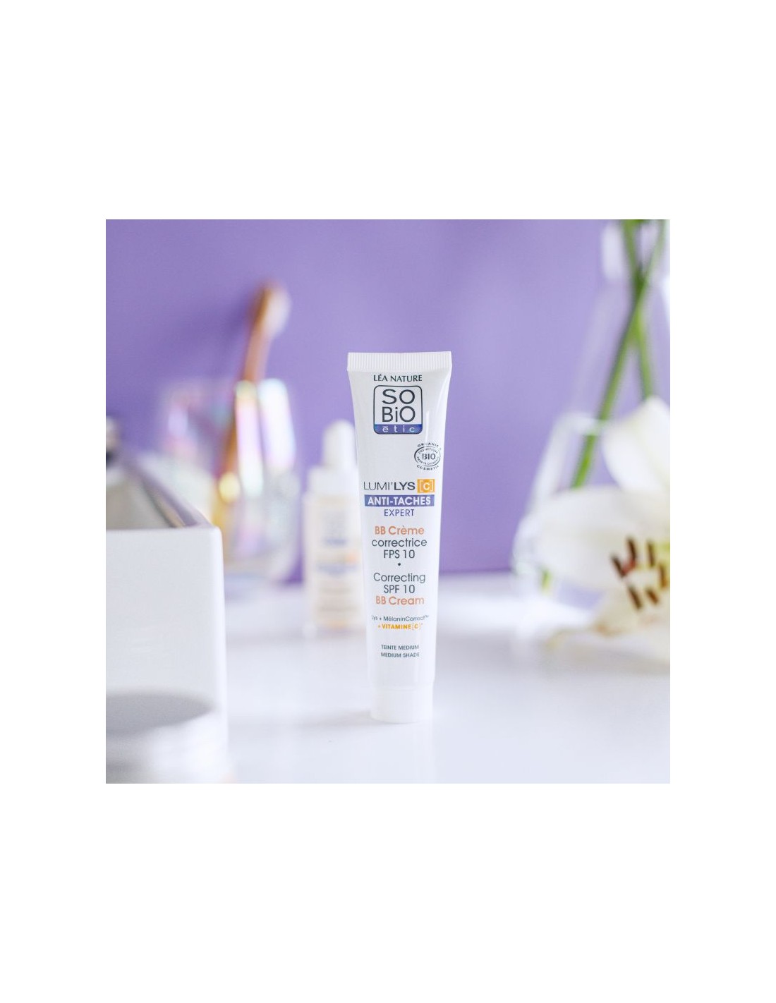 Proporciona una ligera protección solar (SPF 10) y cobertura para unificar el tono de la piel.