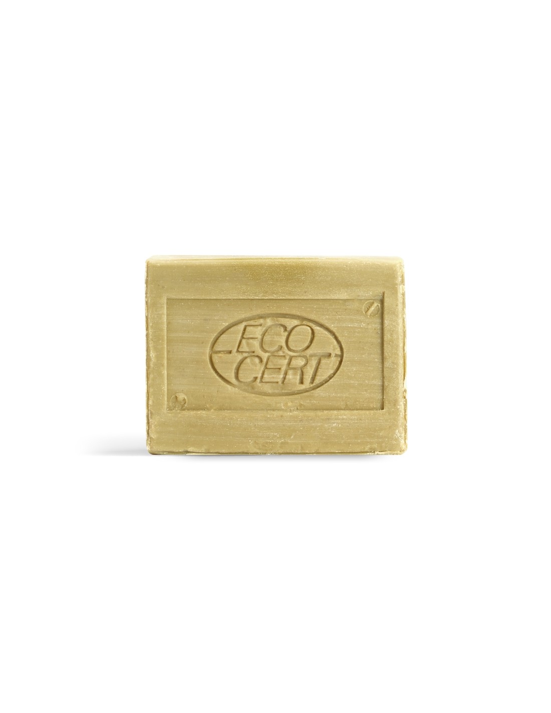 Jabón de oliva de Marsella cocido en caldero y enriquecido con bicarbonato de sodio.