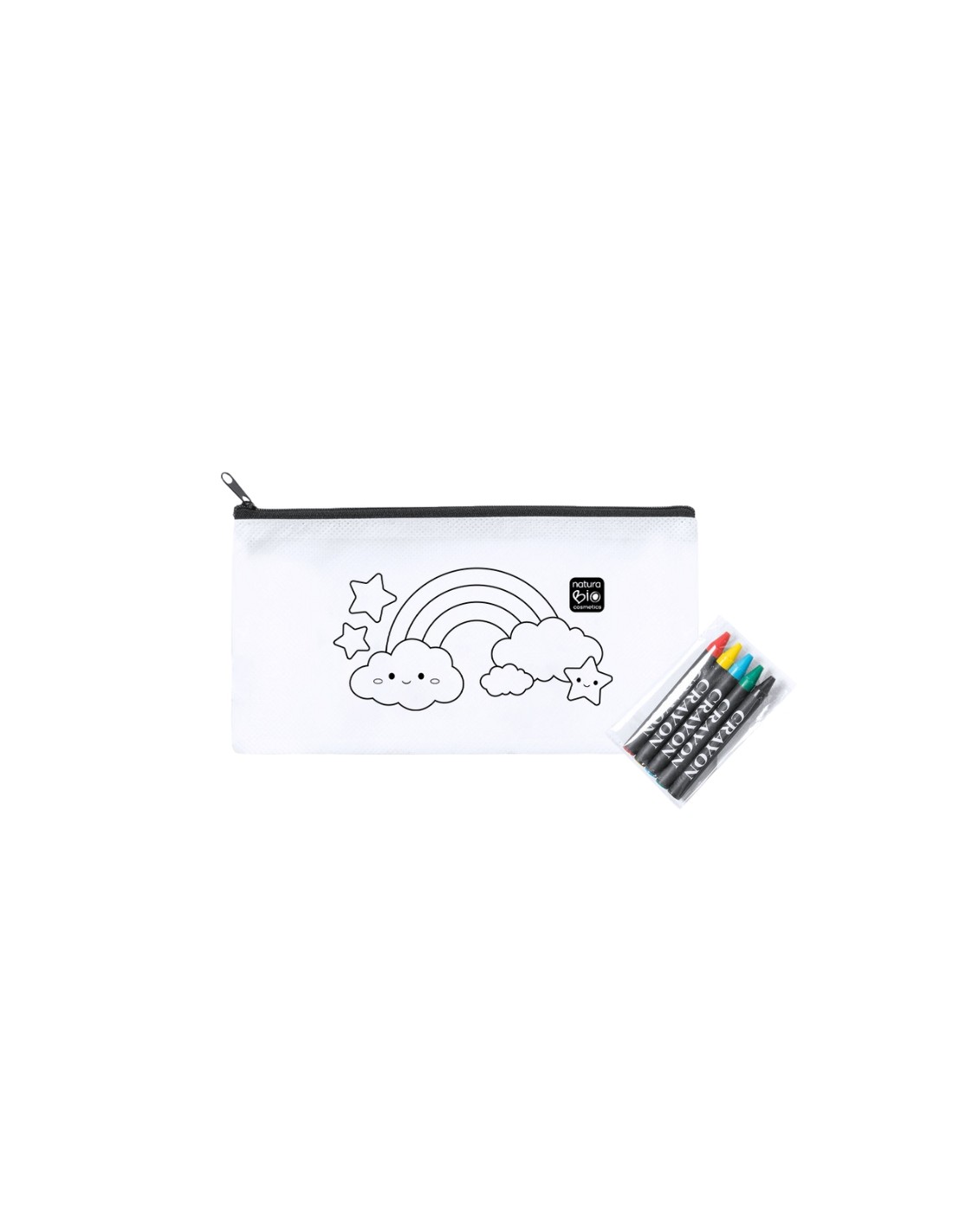 Estuche R-PET para colorear: incluye 5 ceras de colores, práctico y reutilizable para el día a día escolar.