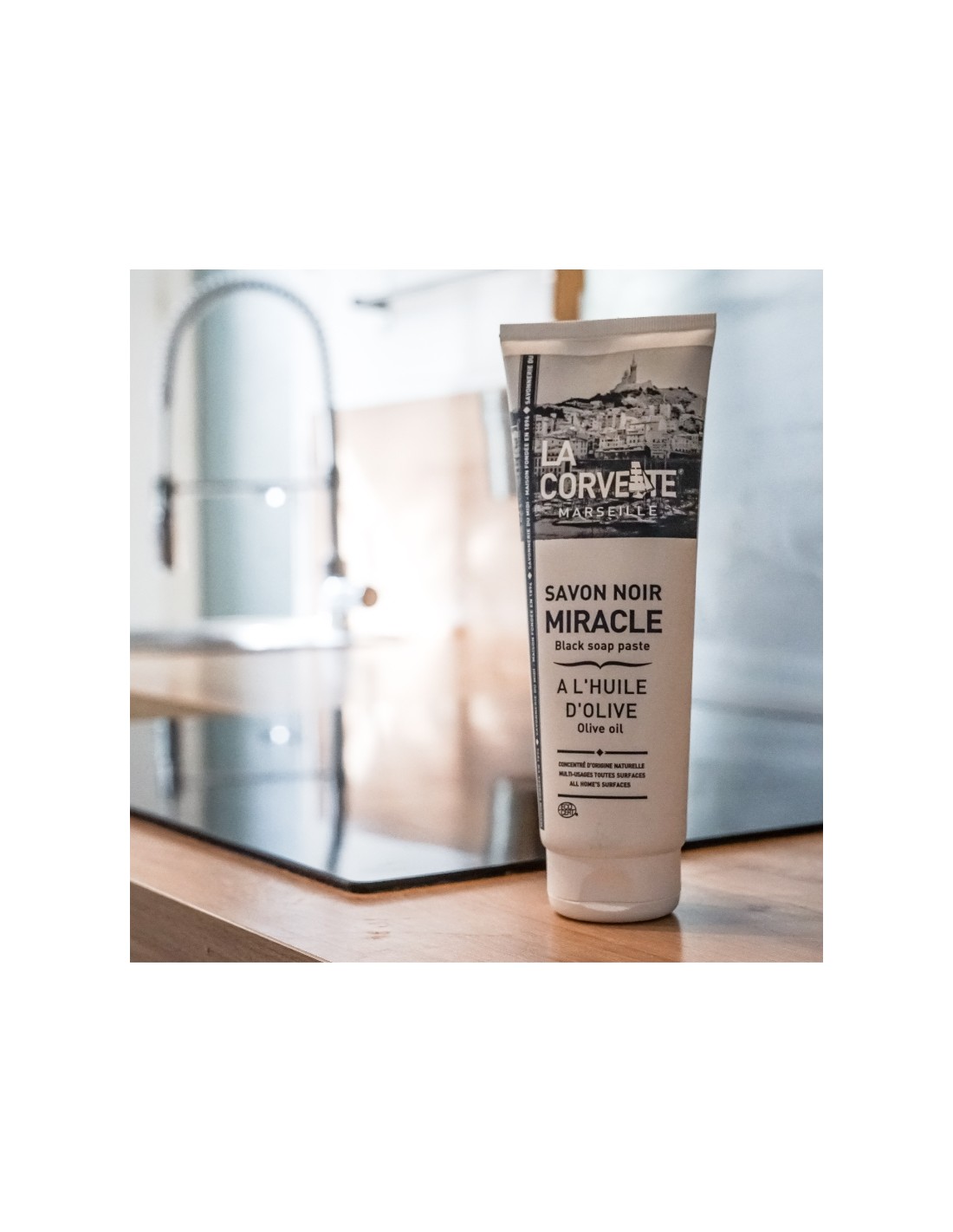 <30 % Savon. Contient également de l’eau, Sels de Carbonates, Glycérine, Hydroxyde de Potassium, Huile de Lin.