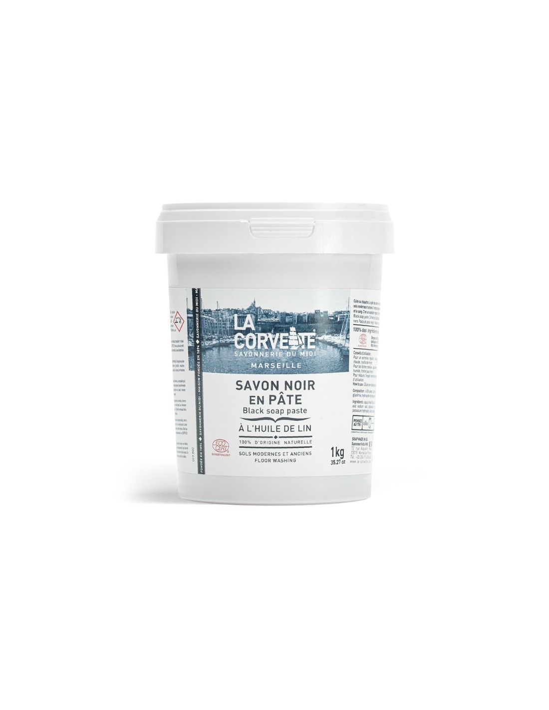 <30 % Savon. Contient également de l’eau, Sels de Carbonates, Glycérine, Hydroxyde de Potassium, Huile de Lin.